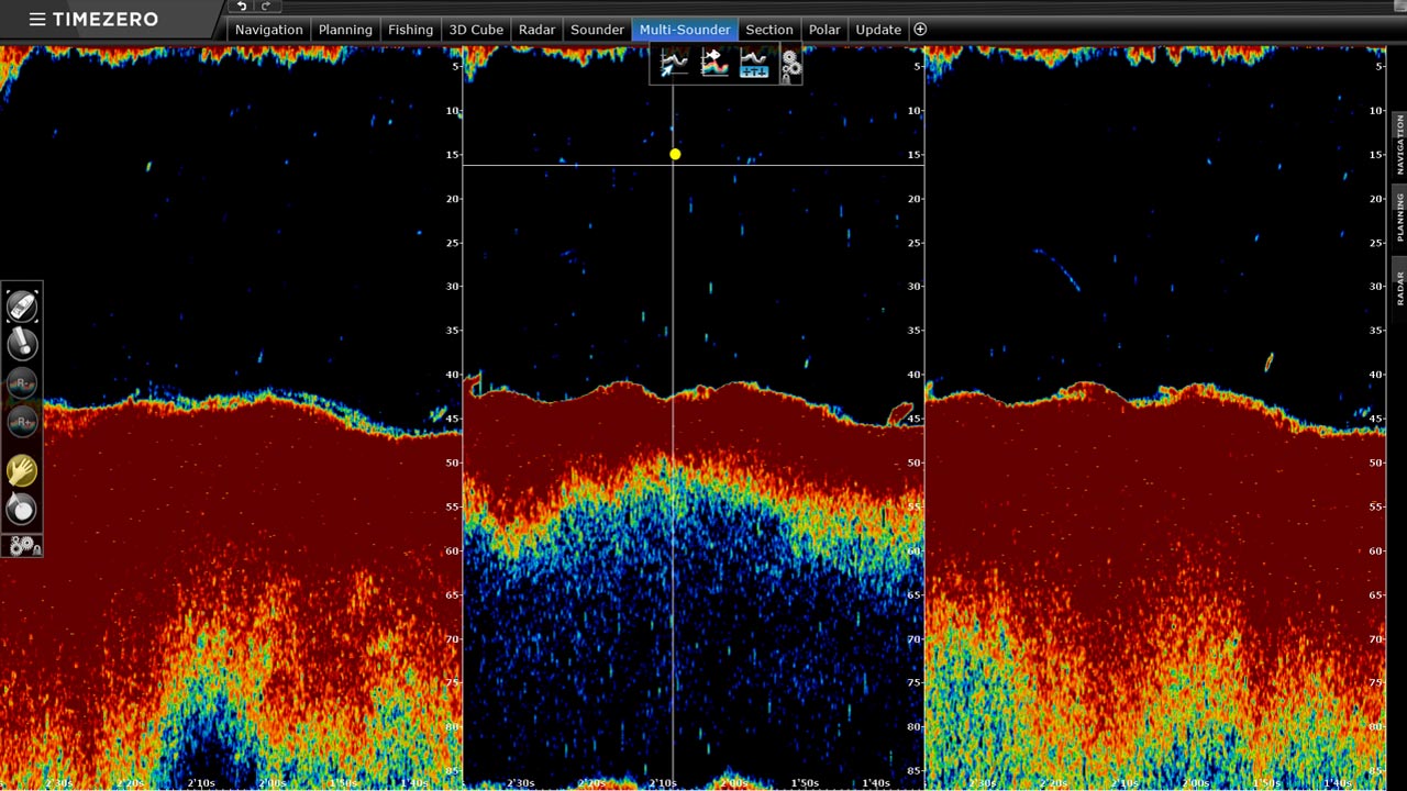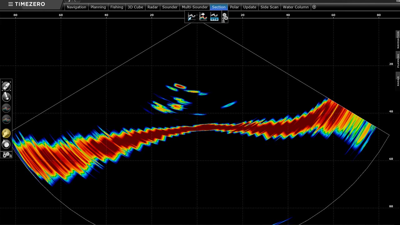 TZ Professional (with the optional PBG and DFF3D modules) can be connected to the new Furuno DFF3D Multi Beam sonar. Creating your bathymetric (PBG) map becomes as fast as ever with TZ Professional. Multiple beams are constantly sent out by the sonar returning quality information for each depth point.